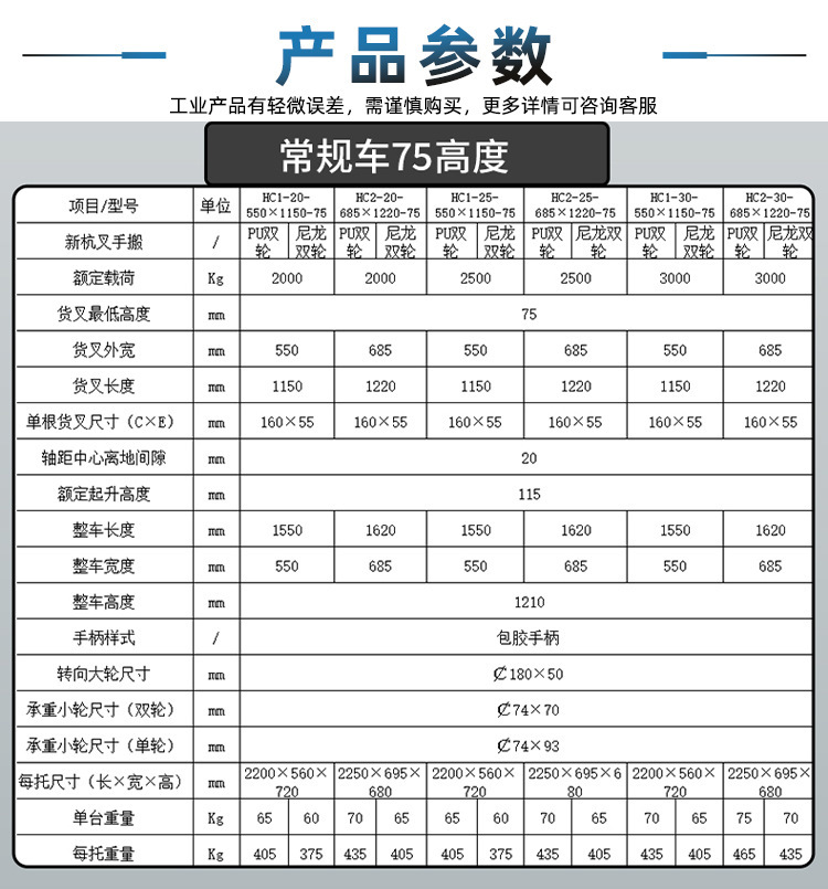 型号 :杭叉手搬(2吨)窄腿,尼龙双轮,杭叉手搬(2吨)宽腿,尼龙双轮,杭叉手搬(2吨)窄腿,PU轮,杭叉手搬(2吨)宽腿,PU轮,杭叉手搬(2.5吨)窄腿,尼龙双轮,杭叉手搬(2.5吨)宽腿,尼龙双轮,杭叉手搬(2.5吨)窄腿,PU双轮,杭叉手搬(2.5吨)宽腿,PU双轮,杭叉手搬(3.0吨)窄腿,尼龙双轮,杭叉手搬(3.0吨)宽腿,尼龙双轮,杭叉手搬(3.0吨)窄腿,PU双轮,杭叉手搬(3.0吨)宽腿,PU双轮,杭叉手搬(5.0吨)HE50,550×1150(尼龙双轮),杭叉手搬(5.0吨)HE50,685×1220(尼龙双轮),杭叉手搬(2吨)窄腿低放51mm,杭叉手搬(2吨)宽腿低放51mm,非标10吨(定金)详询客服,非标3吨-货叉长1500mm,非标3吨-货叉长1800mm,非标3吨-货叉长2000mm,非标5吨-货叉长1500mm(定金)详询客服,非标5吨-货叉长1800mm(定金)详询客服,非标5吨-货叉长2000mm(定金)详询客服,电子秤搬运车(2吨)-不带打印,电子秤搬运车(2吨)-带打印,电子秤搬运车(3吨)-不带打印,电子秤搬运车(3吨)-带打印,不锈钢手动搬运车(2吨),不锈钢手动搬运车(2.5吨),不锈钢手动搬运车(3吨)