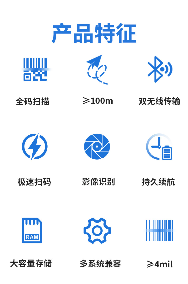 型号 :BX11G一维无屏黑色单2.4G,BX12G二维无屏黑色单2.4G,BX10一维便携带屏黑色2.4G加蓝牙,BX10一维便携带屏白色2.4G加蓝牙,BX20二维便携带屏黑色2.4G加蓝牙,BX20二维便携带屏白色2.4G加蓝牙