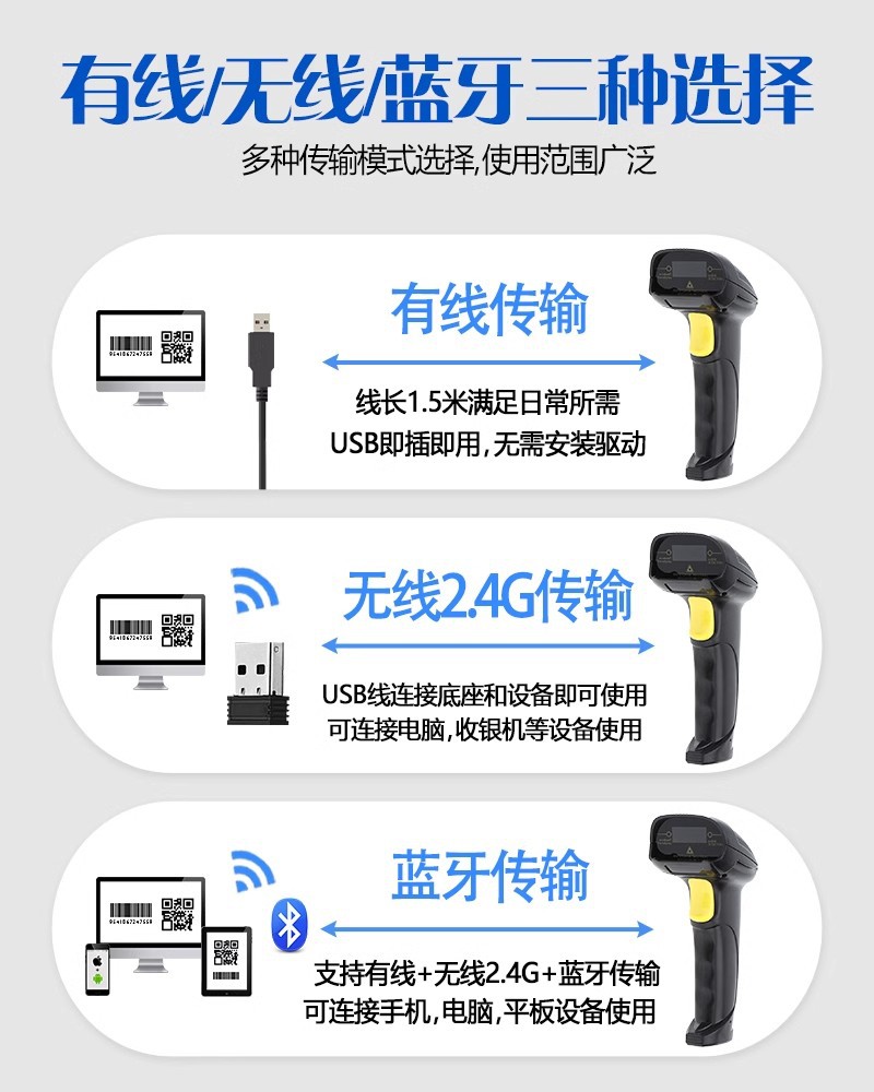 型号:一维有线8200L,一维无线8200LW,一维蓝牙8200LB,二维有线8200D,二维无线8200DW,二维蓝牙8200DB,选配带支架加15元